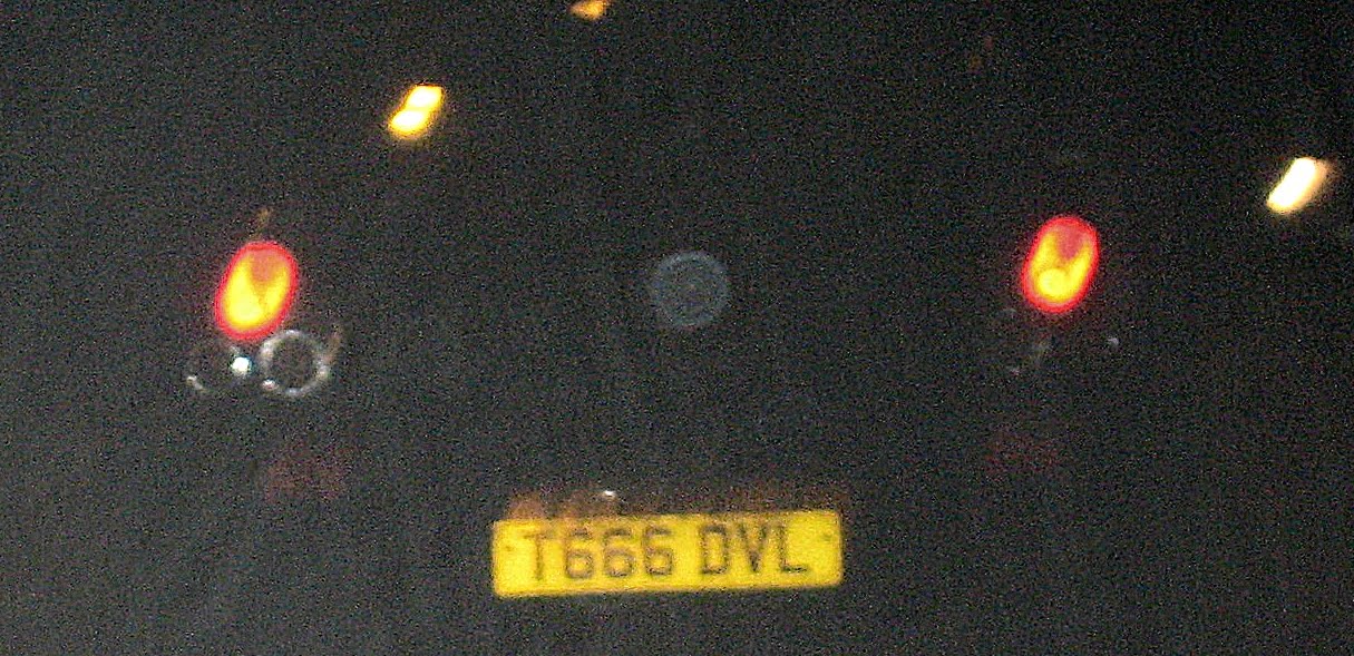 The number of the the Beast, who gets his authority from the DeViL (DVL on the car’s plate?) is 666. God wants the Christians to remain faithful and refuse to wear such a name or to do anything that would identify themselves with evil.