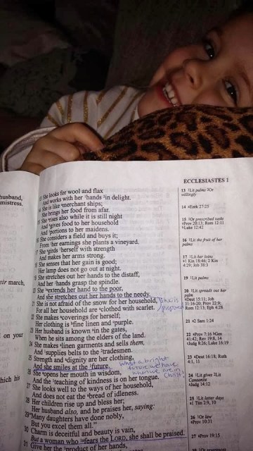 “I was reading about the worthy woman to my sweet girl and she stopped me in the middle and in the sweetest most genuinely excited voice she said, ‘momma this is taking about you!’ And after hugging her I told her this verse was talking about her… ‘her children rise up and bless her’. I thank God for the weighty but gratifying task of raising my children to know God. There is no greater job.” – Heidi